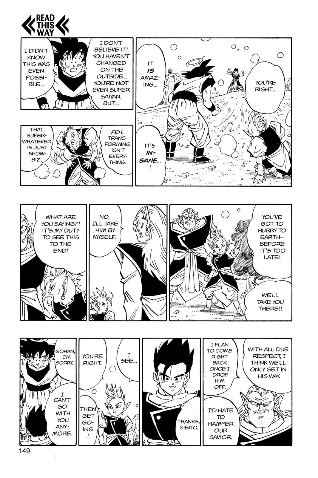 I don't know what you expected to prove with that picture. Closed drawn eyes, more muscle mass than pre-ritual Gohan. He looks pretty Ultimate to me. As you yourself have proved with your own picture, Old Kaioshin's ritual had certain permanent physical alterations that lasted for ten years that only appeared after he "turned Super Saiyan with a kiai" (pre-kiai, post-kiai). It's indisputable that going "Super Saiyan" did something permanent to Gohan, as his very character design is changed for the rest of the manga. This, along with Goku commenting how Gohan's appearance has barely changed and Old Kaioshin remarking that transforming isn't good, heavily implies that this is an upgrade to his base. Ah, but which version of Super do I have to take into account? Because the manga supports my stance (so far). There's no instance of Gohan powering up into or down from Ultimate in there. Not to mention that Gohan looks pretty Ultimate even before they leave Earth for the Tournament of Power. |
